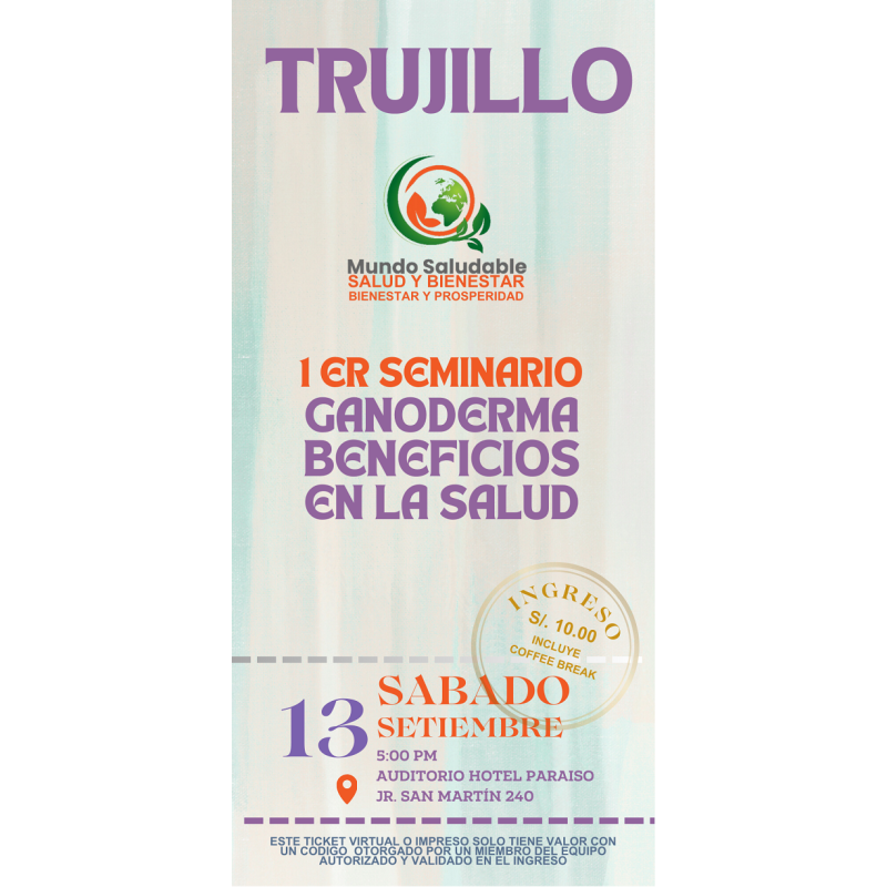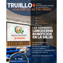 TIENES UNA GRAN OPORTUNIDAD DE CONOCER LOS BENEFICIOS DEL GANODERMA LUCIDUM EN LA SALUD INTEGRAL DE TODA LA FAMILIA, SEMINARIO BRINDADO POR ESPECIALISTAS BASADOS EN INVESTIGACIONES Y TESTIMONIOS REALES DE QUIENES YA LO VIENEN CONSUMIENDO CON EXCELENTES RESULTADOS.